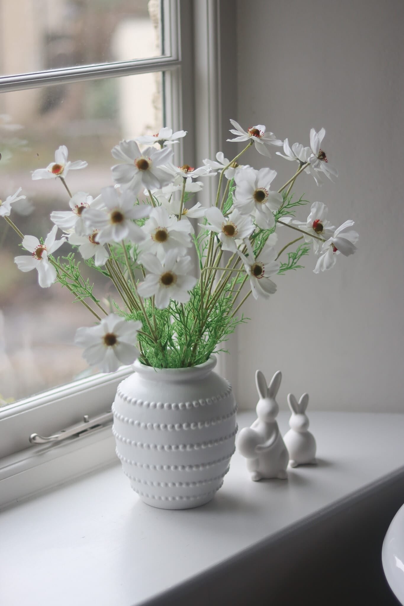 With its timeless shape and neutral colour, this white vase is ideal for small flower arrangements and works well across shelves, tables, or consoles.