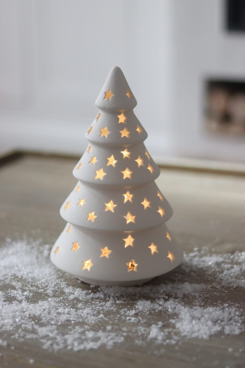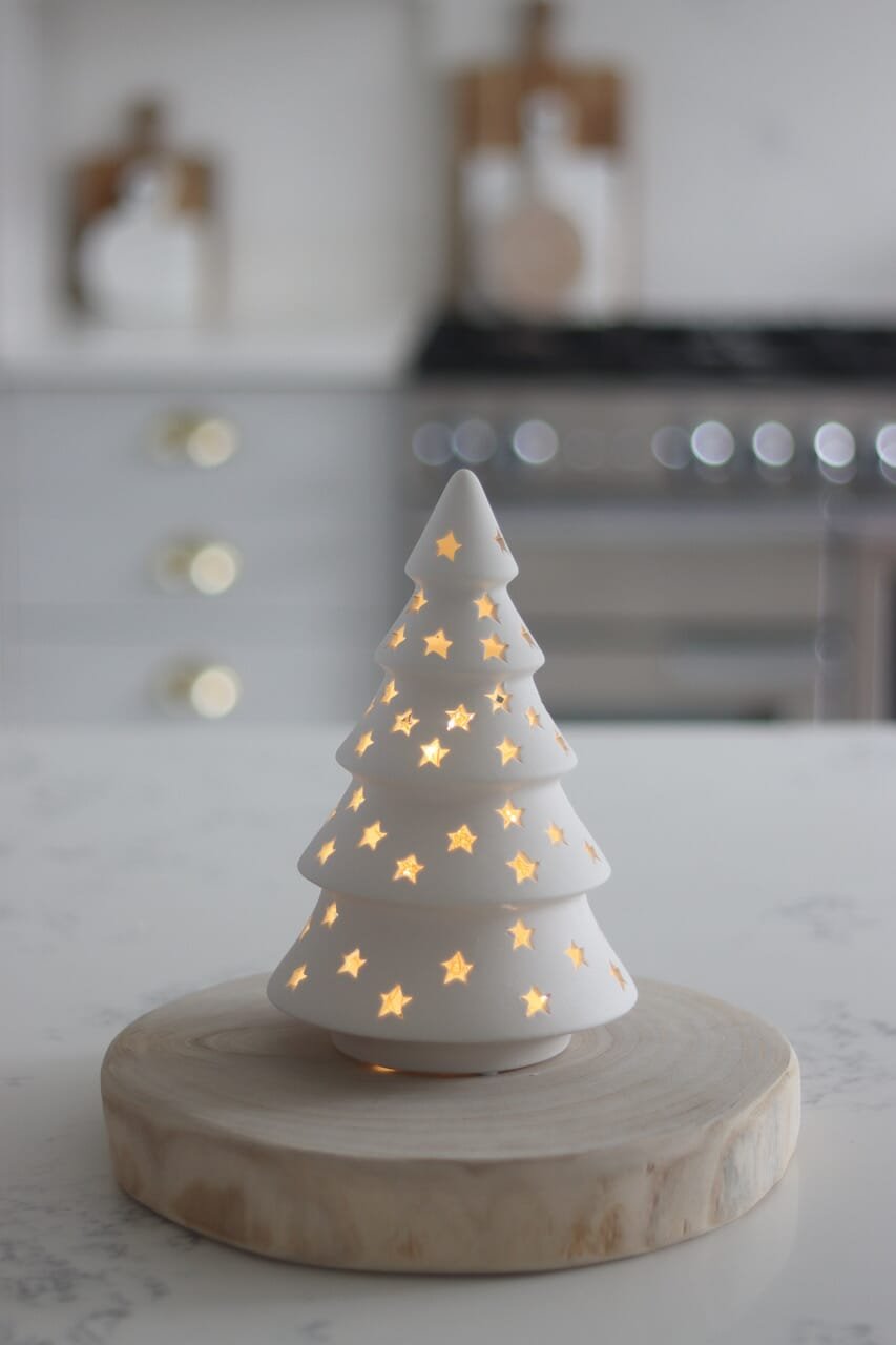 This ceramic tree is a must have Christmas decoration, simple place a tea light under neath to light up your worktops.