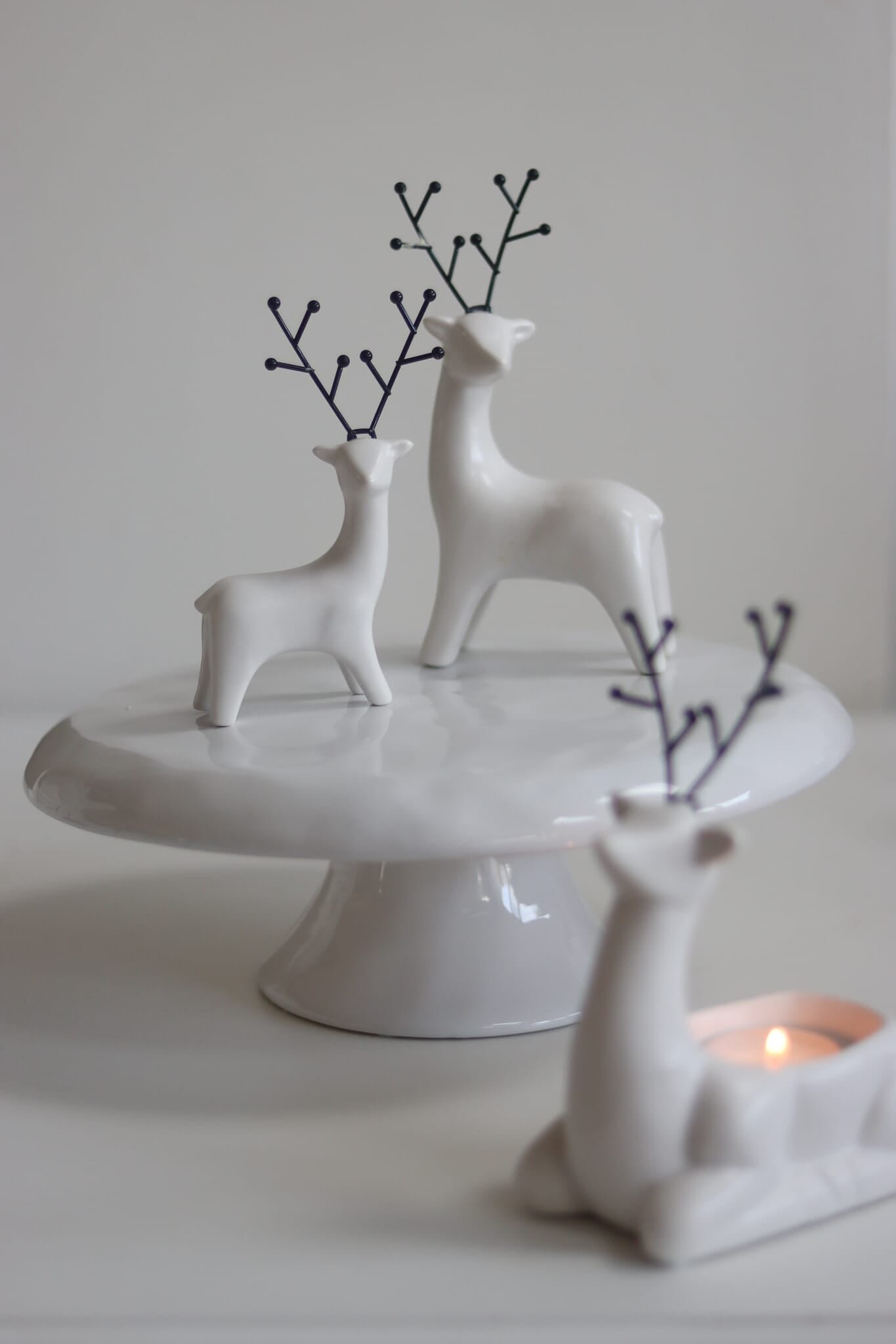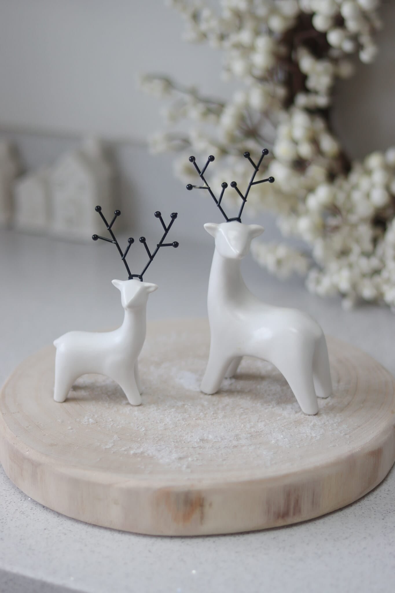Capture the essence of Christmas with our Set of 2 ceramic deer Christmas decorations , finished in a matt White. These deer decorations offer versatile Christmas decoration options, perfect for complementing your festive decor on a seasonal display or as stand-alone pieces on their own on a shelf or centre piece.