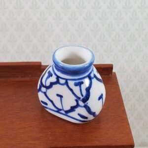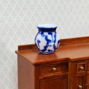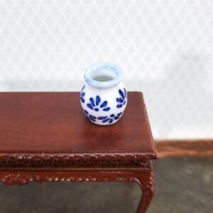 Alittleis Art Supplies Dollhouse Large Blue & White Decorative Vase Flat Sides 1:12 Scale Miniature