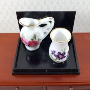 Alittleis Art Supplies Dollhouse Vase and Pitcher Reutter Porcelain Floral Design 1:12 Scale Miniatures