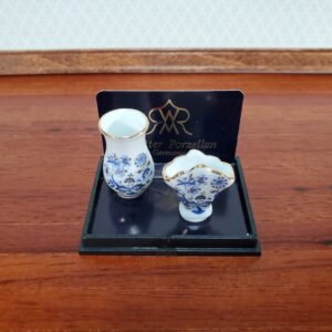 Alittleis Art Supplies Dollhouse Vases Set of 2 Reutter Porcelain Blue Floral with Gold Trim 1:12 Scale Miniatures